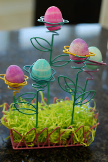 kids painted ceramic eggs and colored hard boiled ones. [Note to self…coloring eggs with